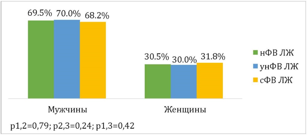 Рисунок 1. Сравнение гендерных характеристик пациентов между исследуемыми группами